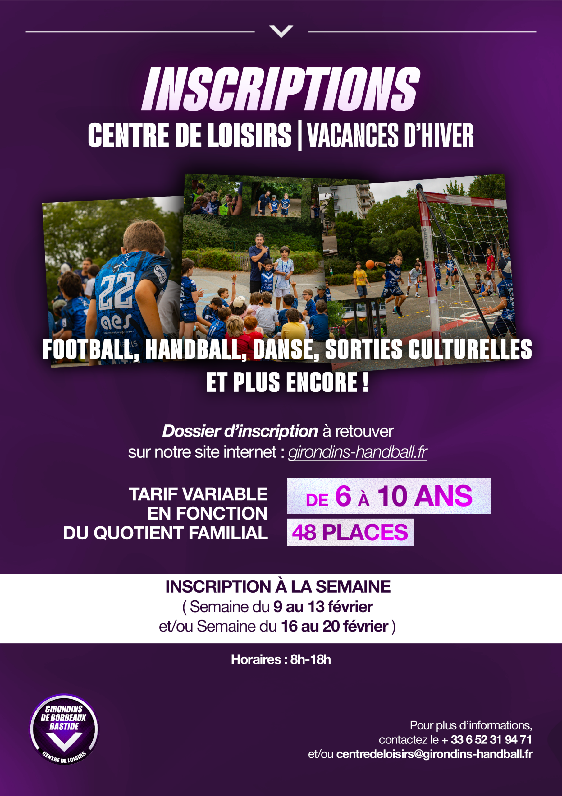 Le Centre de loisirs des Girondins de Bordeaux Bastide Handball Club ouvrira ses portes pendant les vacances d’automne.